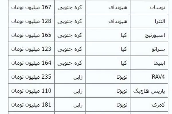 قیمت خودروهای وارداتی در بازار تغییر خاصی نسبت به نرخ این خودروها در هفته گذشته نداشته است.