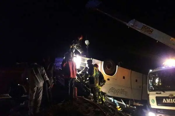 (تصاویر) واژگونی اتوبوس در جاده سبزوار- شاهرود