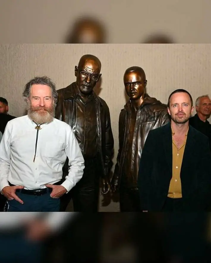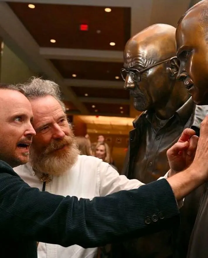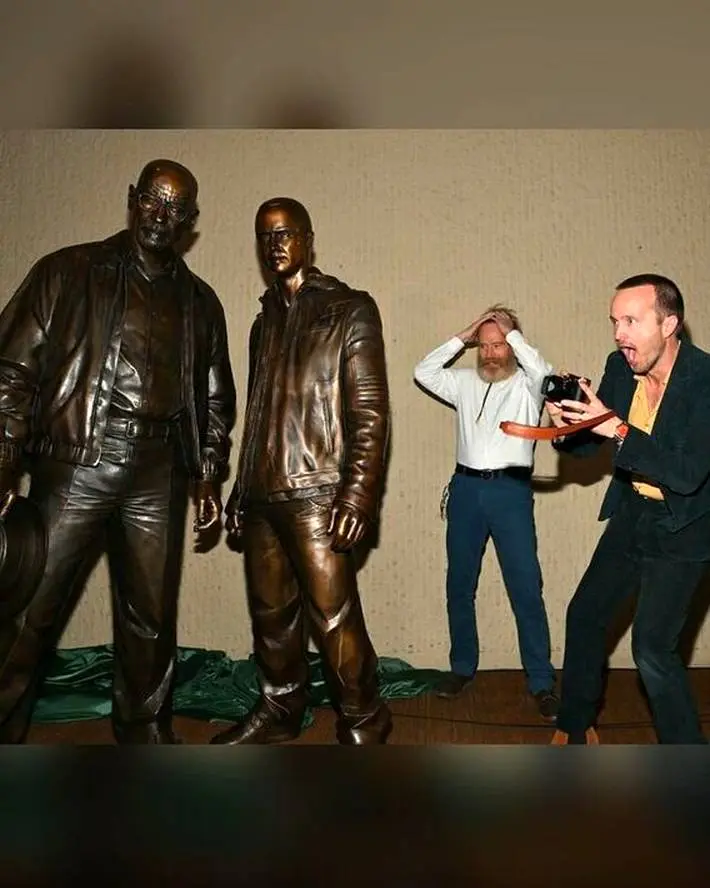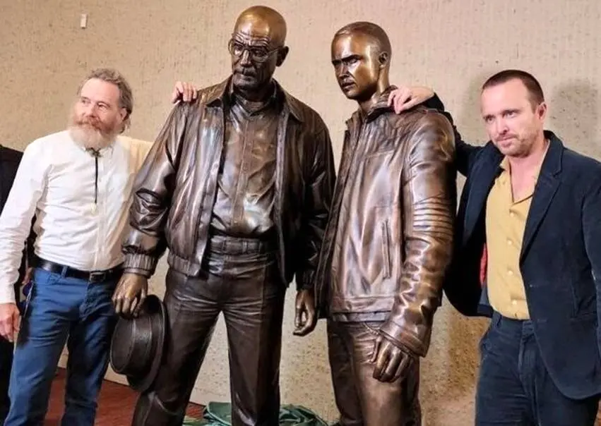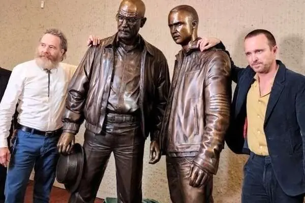 مجسمههای برنزی والتر وایت و جسی پینکمن بازیگران سریال Breaking Bad روز جمعه در آلبوکرکی با حضور برایان کرانستون و آرون پل بازیگران در این مراسم رونمایی شد.