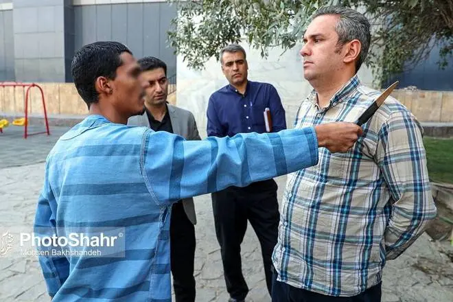 جوانی که به دلایل واهی سیزده به در امسال در بوستان امت مشهد جوان دیگری را با ضربات چاقو کشته بود، پس از دستگیری در استان سیستان و بلوچستان و اقرار به جرم، صحنه قتل را بازسازی کرد.