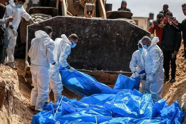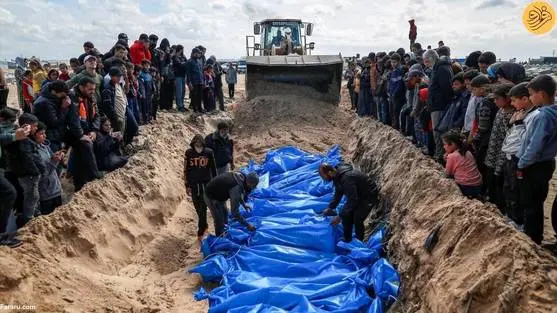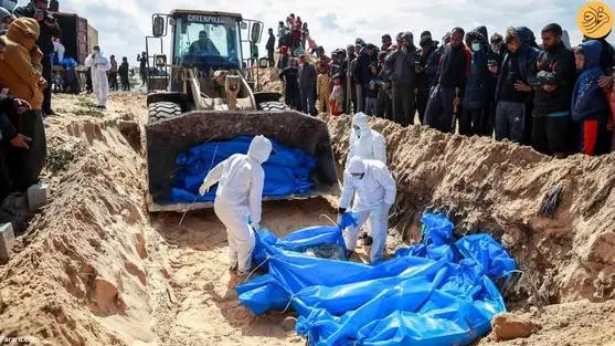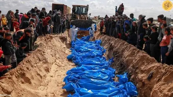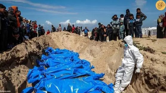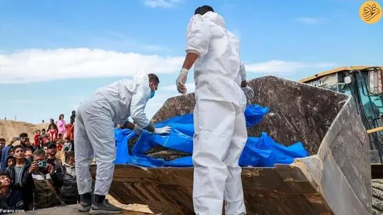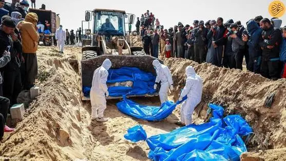 (تصاویر) دفن اجساد تجزیه شده ۴۷ فلسطینی در گور دسته جمعی