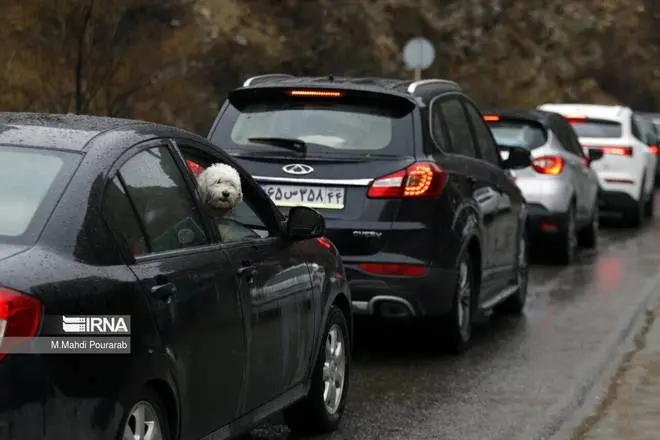 (تصاویر) ترافیک سنگین جاده چالوس ۶ فروردین ۱۴۰۳