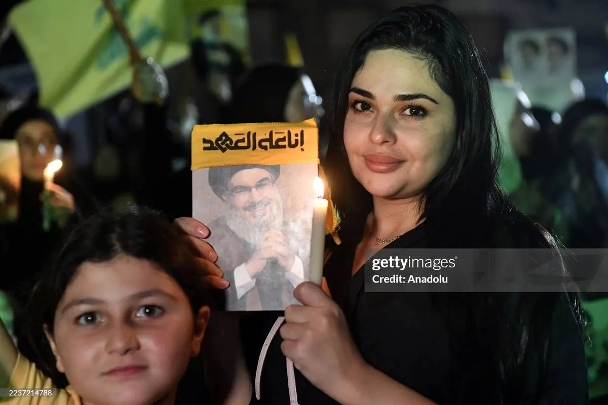 هزاران نفر از هواداران حزبالله در بیروت گرد هم آمدند تا به سید حسن نصرالله و جانشین او، هاشم صفیالدین، که هر دو یک سال پیش در حملات هوایی اسرائیل شهید شدند، ادای احترام کنند.