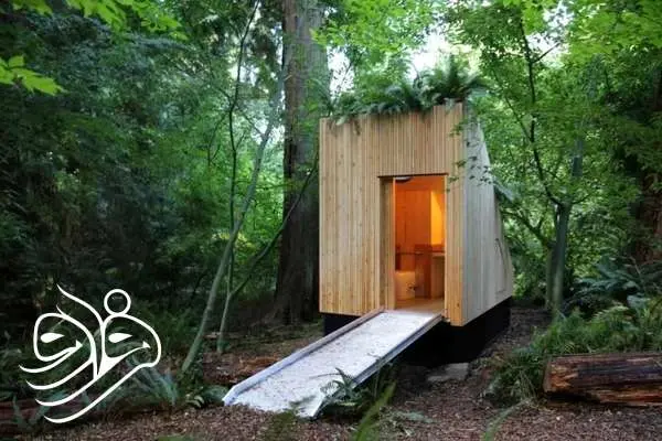 این توالت ماژولار از چند پنل چوبی ساخته شده و نمای بیرونی آن از سرو مقاوم در برابر پوسیدگی است. سقف سبز رنگ آن نیز میزبان گیاهان و حیاتوحش محلی است. پوشش چوبی بهصورت نیمسوز برای خاصیت ضدباکتریایی آماده شده و یک فن کممصرف جریان هوا را بهطور مداوم متعادل میکند. داخل سازه نیز محققان از نورگیر و پوششهای چوبی و فولاد ضدزنگ فضایی هماهنگ با جنگل اطراف استفاده کردهاند.