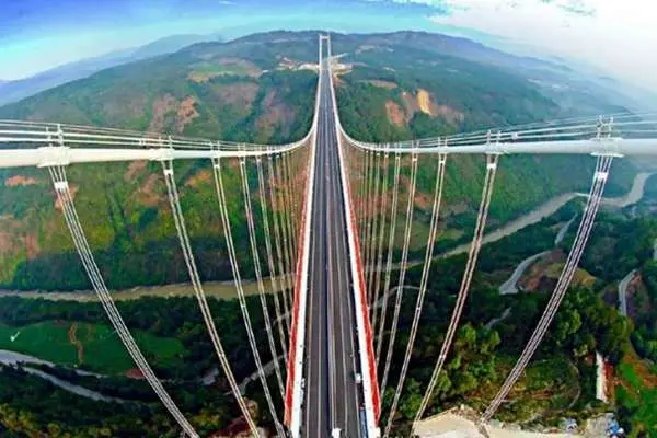 پل معلق «درۀ هواجیانگ بزرگ» در استان کوهستانی گویژو با ارتفاع ۶۲۵ متر از سطح رودخانه (۵ برابر برج ایفل!) افتتاح شد و رکورد جهانی را شکست. این پل غولپیکر که ۲۸۹۰ متر طول دارد، زمان عبور از درهای عمیق را از دو ساعت به تنها دو دقیقه کاهش داده است.