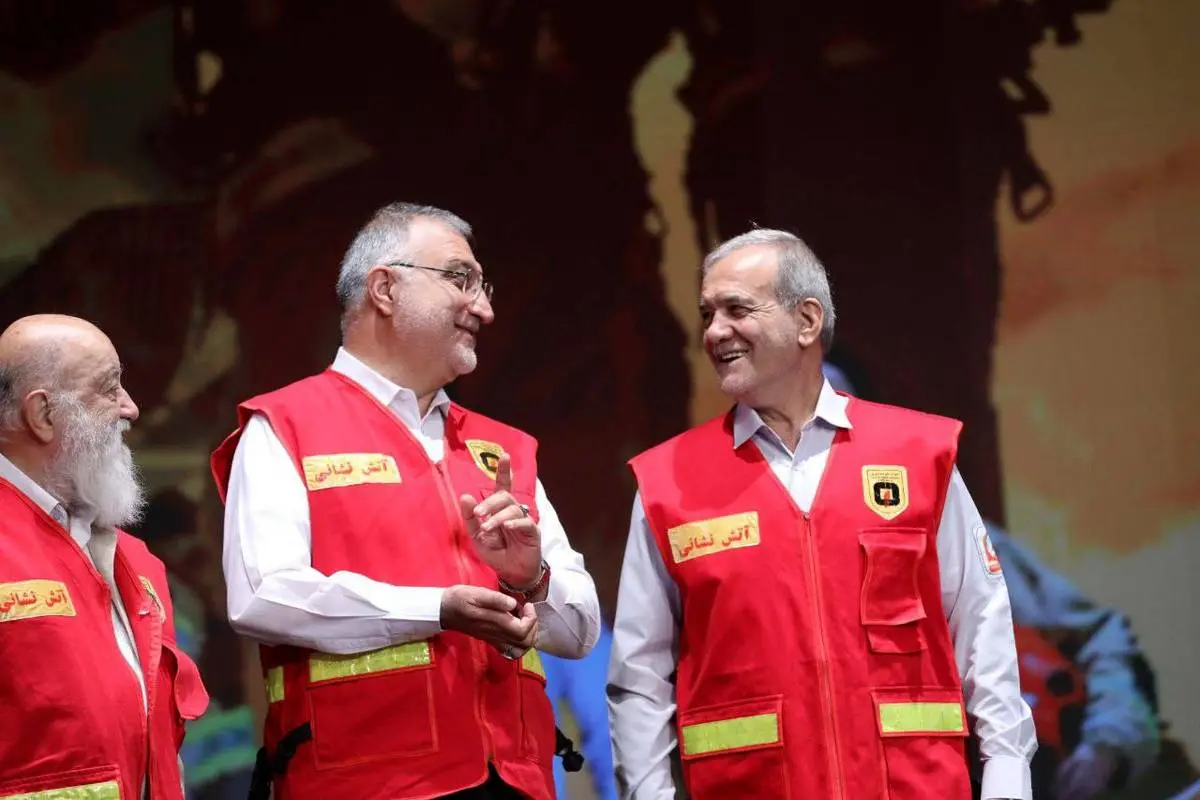 تصاویر پربازدید از پزشکیان و زاکانی در لباس آتشنشانی