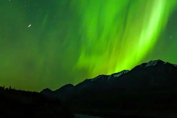 شفق قطبی قلههای پوشیده از برف آلاسکا را روشن کرد
