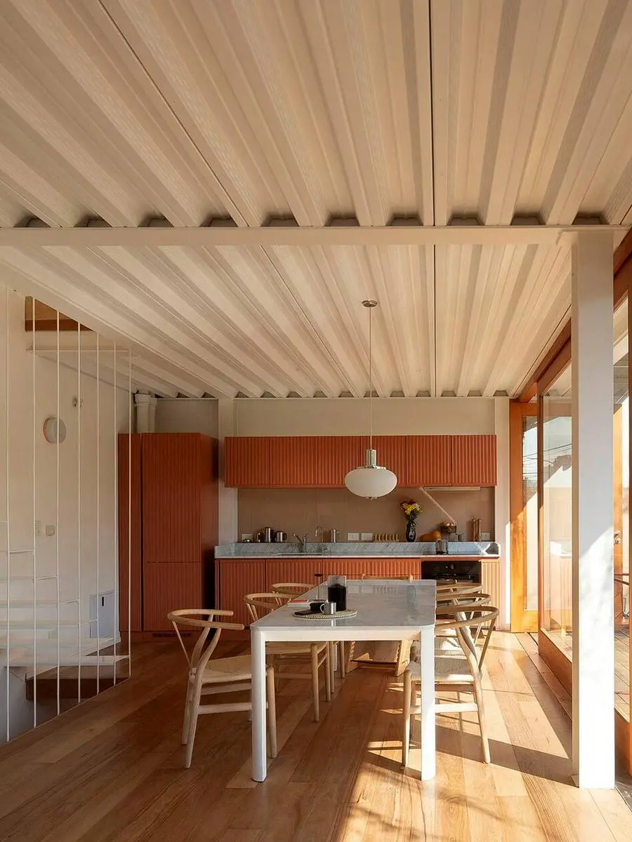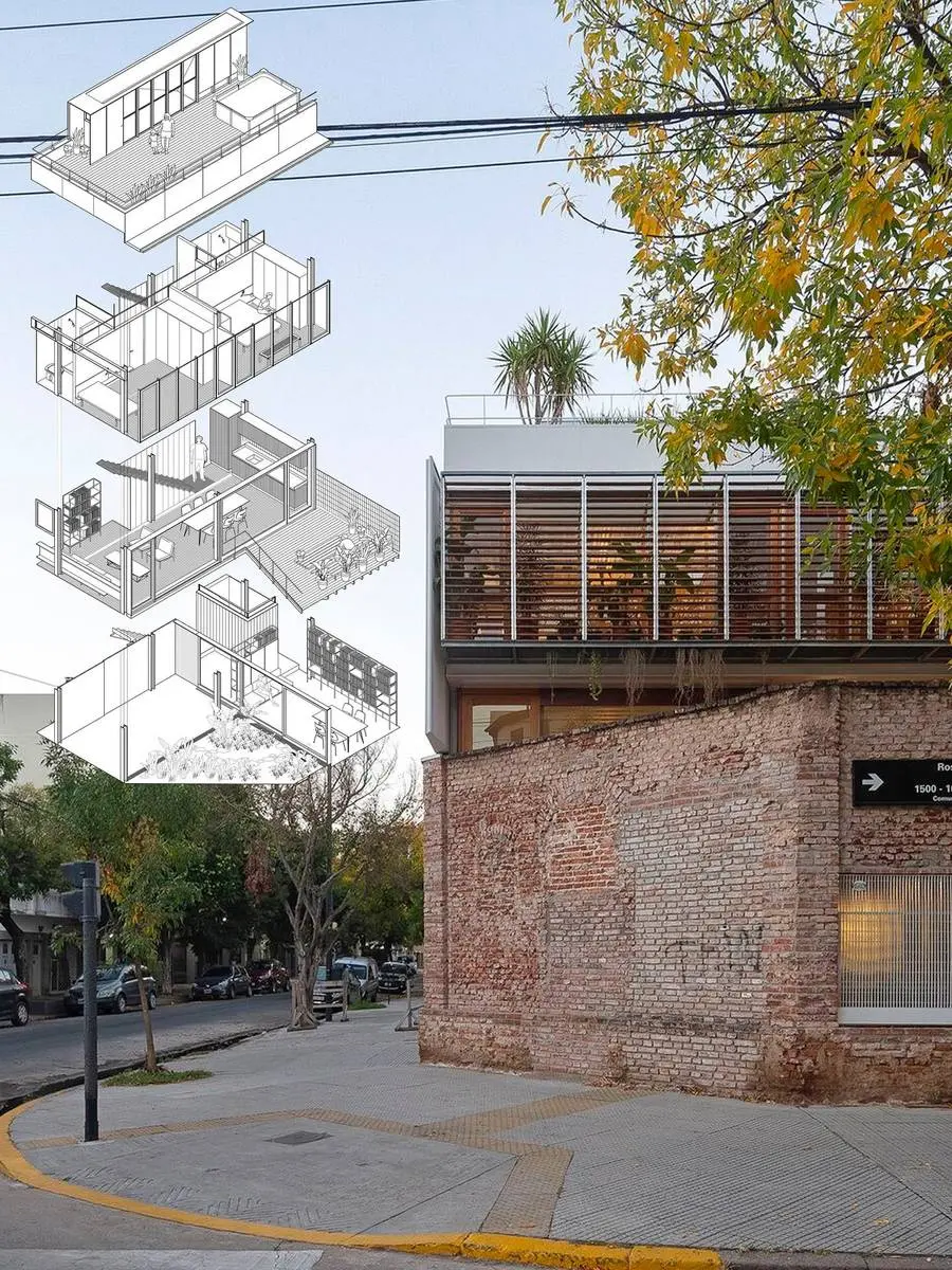 خانه «روسِتی» در محله ویلا اورتوزار بوئنوس آیرس، توسط استودیو دامرو با هدف احترام به هویت تاریخی محل اجرا شد. طراحان با حفظ پوسته آجری نمایان یک کیوسک قدیمی و معروف محلی، این ساختمان ۱۴۰ متری را به نمادی از تلفیق معماری معاصر و حافظه جمعی محله تبدیل کردهاند.
