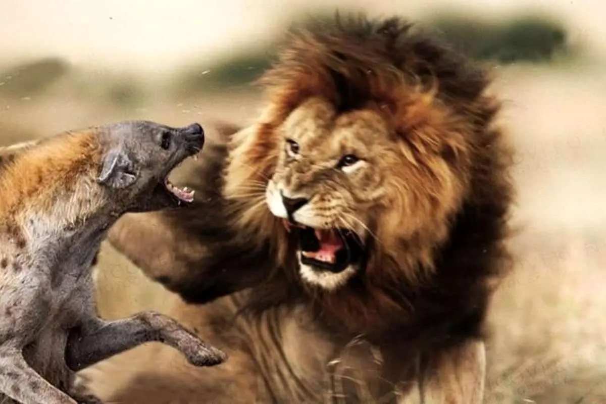 یک کفتار برای یافتن یک وعده آسان در حال گشت زنی در جاده بود که ناگهان دو شیر نر عظیم مستقیماً به سمتش حمله کردند.