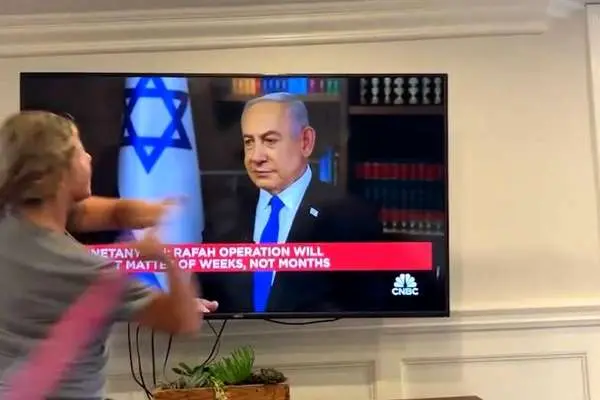 نابود کردن تلویزیون هنگام نشان دادن نتانیاهو