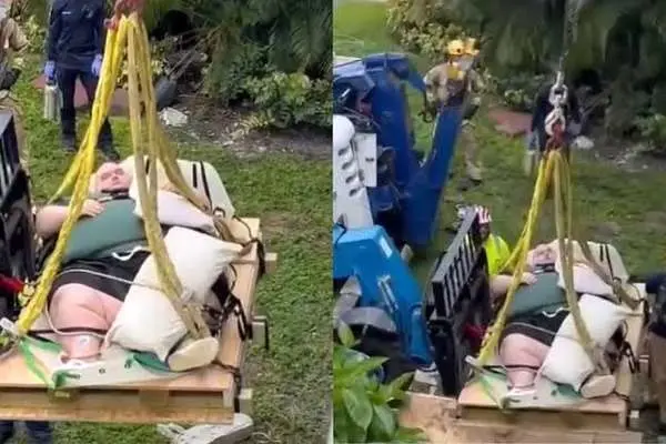 در ویدئویی حیرتانگیز که بهتازگی در فضای مجازی منتشر شده، مردی ۶۰۰ پوندی (حدود ۲۷۰ کیلوگرم) از خانهاش در ایالت فلوریدا با استفاده از جرثقیل و پالت حمل بار نجات داده شد. این مرد که نامش فاش نشده، روز سهشنبه در شهر وست پالم بیچ دچار یک بحران ناگهانی پزشکی شد. به دلیل وزن بالا و مشکلات جسمی، او قادر نبود از پلهها پایین برود یا از درهای خانه خارج شود، بنابراین نیروهای امدادی مجبور شدند با کمک جرثقیل، او را با احتیاط از طبقه بالا به بیرون منتقل کرده و به بیمارستان برسانند.