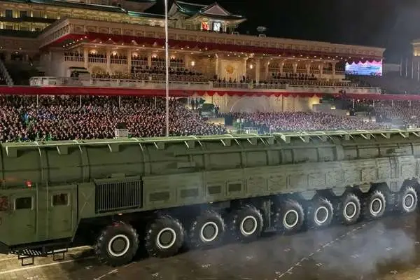 رهبر کره شمالی با حضور نخست وزیر چین و رئیس جمهور سابق روسیه، از موشکی قارهپیما رونمایی کرد.
