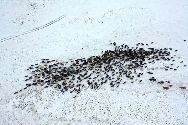 در استان قارص ترکیه، عشایری که تابستان را در ییلاقها به دامداری و تولیدات دامی گذرانده بودند، هنگام بازگشت به روستاهای خود با بارش ناگهانی برف روبهرو شدند.