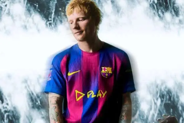ببینید؛ رونمایی اد شیرن از پیراهن جدید بارسلونا با آهنگ ایرانیها: عزیزم!