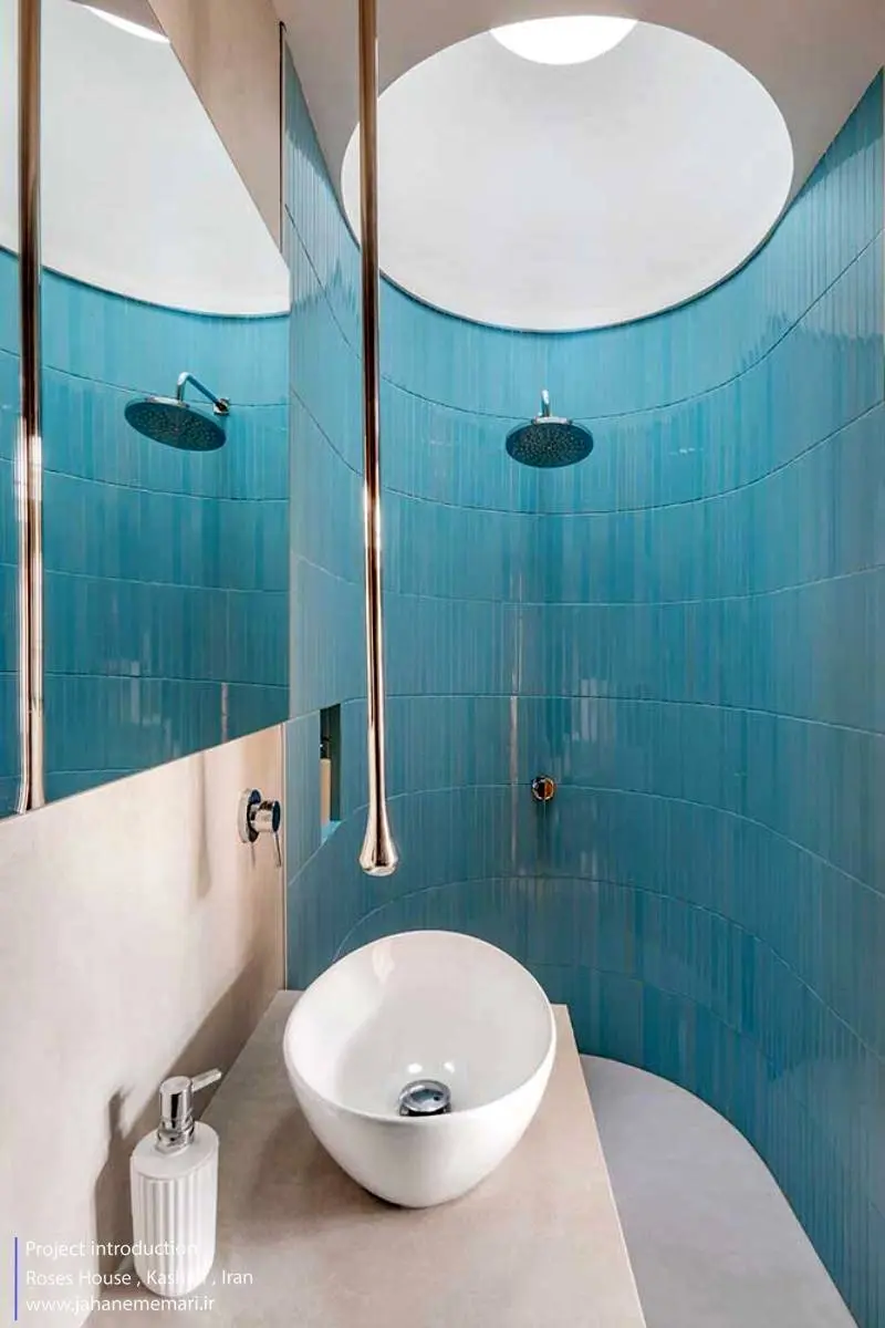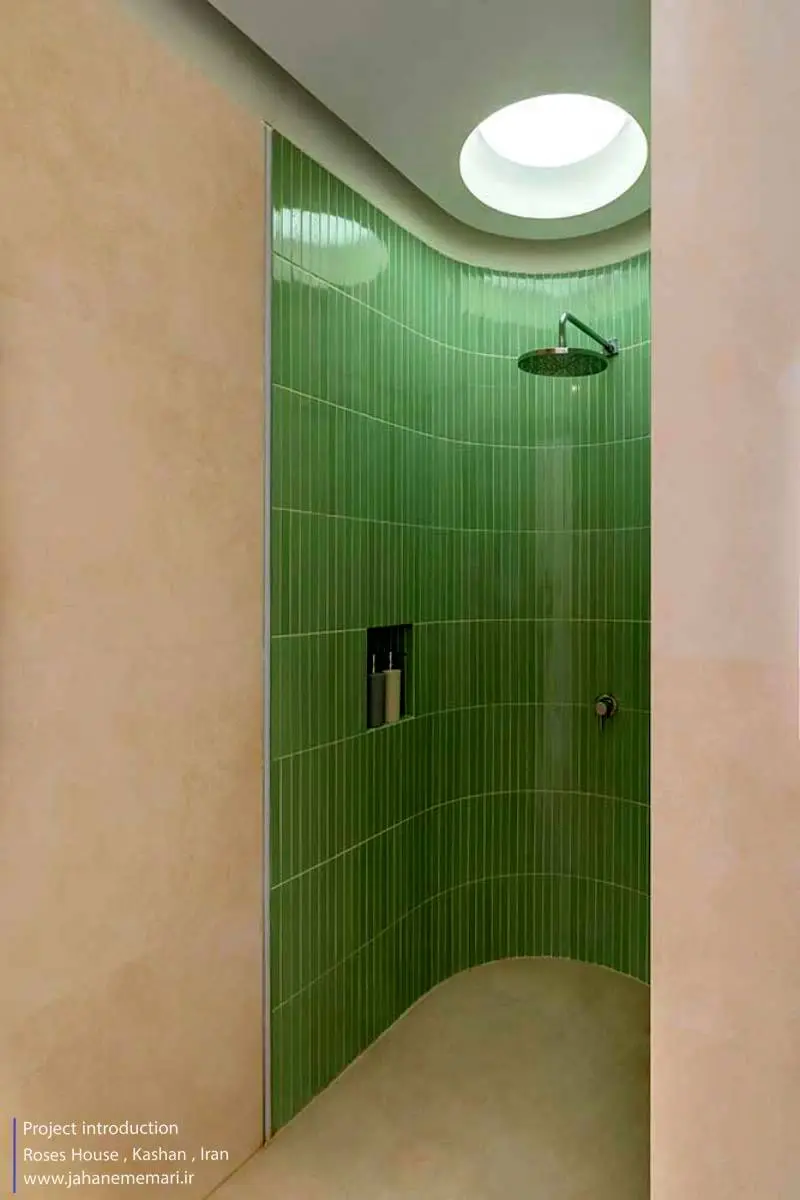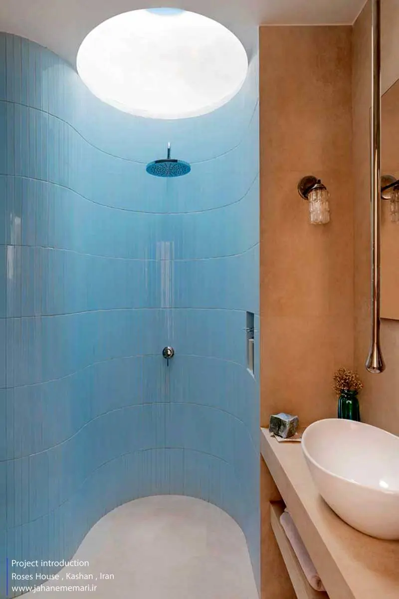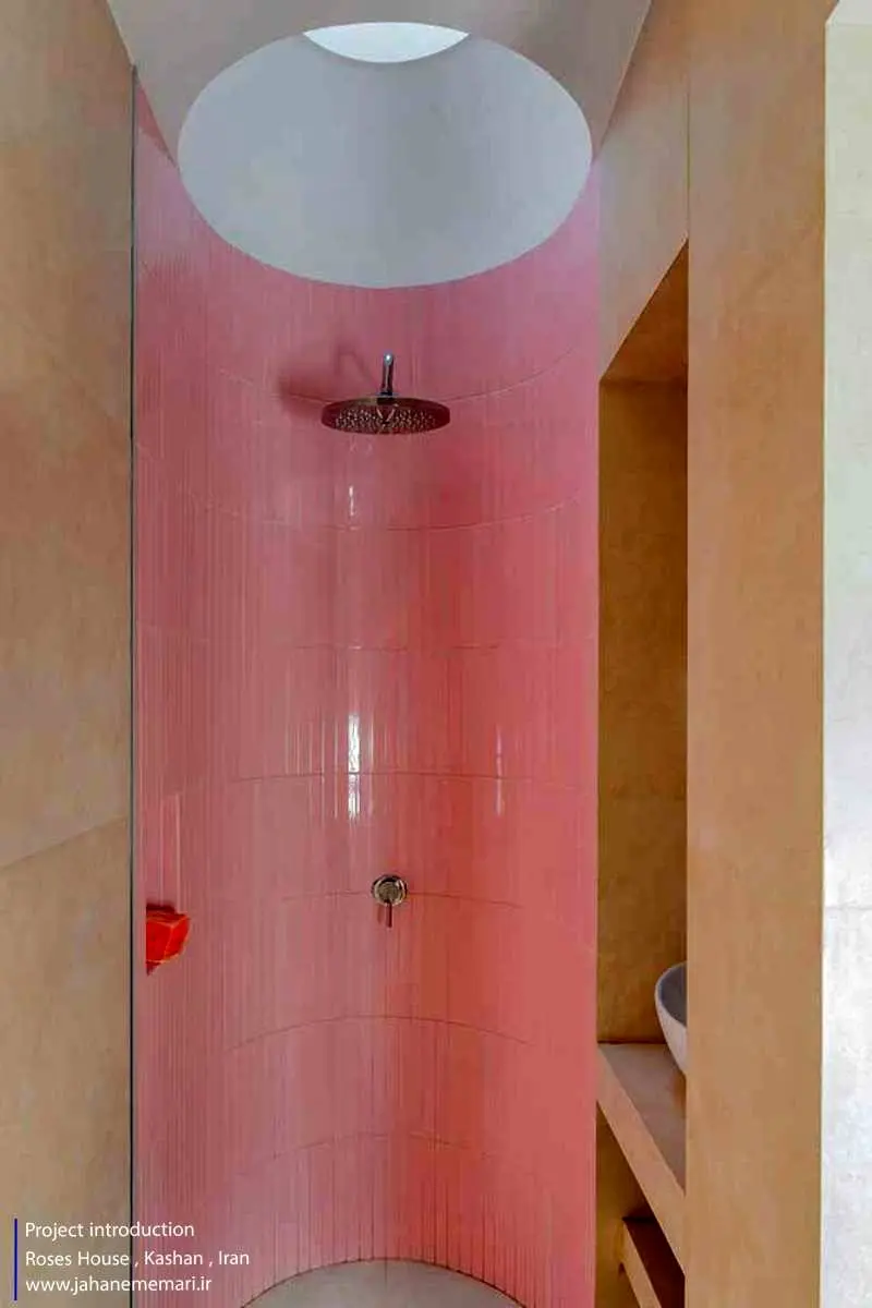 تک تک اتاقهای سرای رُزاس داستانی داشتند که با توجه به تحقیقات محلی بر اساس زندگی و داستان گذشته خود و با بکار بردن عناصر معماری گذشته ولی بصورتی نو بدون دخالت در کالبد قدیمی و اصلی بنا طراحی شدهاند. حمامها فضای الحاقی به کالبد قدیم بنا بود ولی سعی برآن شد که با ورود نور به داخل و دیدن آسمان آبی حس آرامش بیشتری ایجاد شود کما اینکه بصورتی متفاوت ورود نور به حمامهای عمومی در معماری گذشته ایران را شاهد بودیم. بالای نورگیر بام با شیشهای گنبدی و مواج ساخته شد که هنگام عبور نور و انعکاس آن داخل حمام حس انعکاس آب هنگامی نور بر آب هنگامی که بر آب مواج میتابد را ایجاد کند و تعبیه اسپیکر داخل حمامها و موسیقی دلنشین، حس فضا را دو چندان میکند.