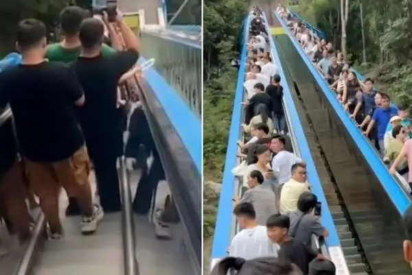پله برقی غول پیکر جهان در چین/ ۱۰ دقیقه پیاده روی تا صعود به قله کوه