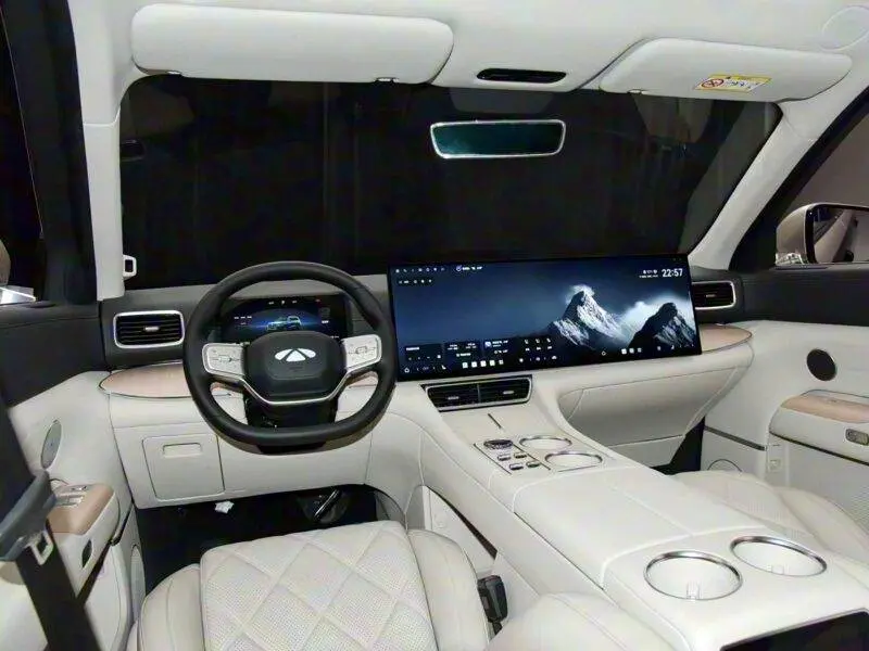 در فضای داخلی، کابین خودرو ترکیبی از نمایشگرهای دیجیتال و مواد باکیفیت را ارائه می دهد. یک نمایشگر 30 اینچی که کل داشبورد و فضای مقابل سرنشین جلو را در بر می گیرد، همراه با یک صفحه نمایش 10.25 اینچی پشت فرمان و نمایشگر سقفی 17.3 اینچی در ردیف عقب نصب شدهاند.