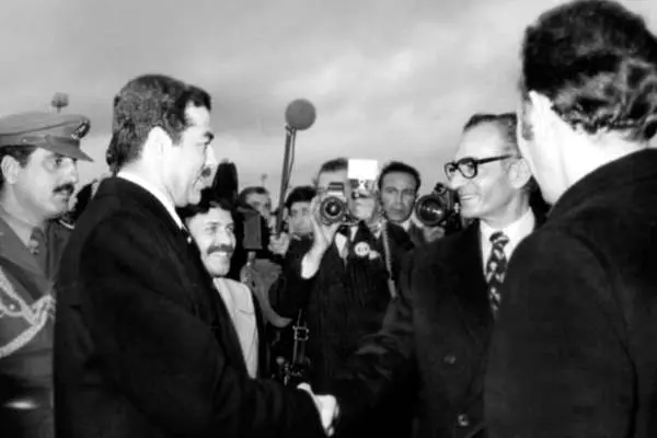 در ششم ژوئن ۱۹۷۵ و در حاشیه جلسه اوپک در الجزایر، با ابتکار رئیس جمهور الجزایر هواری بومدین، صدام حسین – که در آن موقع معاون رئیس جمهور عراق بود- با شاه ایران توافقنامهای امضا کرد که مشکلات کشتیرانی در شط العرب را حل میکرد. تصویر کمتر دیده شده زیر مربوط به همین دیدار است.