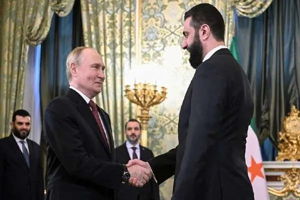 رئیس دولت موقت سوریه در نخستین دیدار رسمی خود با «ولادیمیر پوتین» رئیس جمهور روسیه در مسکو، ضمن تاکید بر پایبندی کامل دمشق به توافقات پیشین میان دو کشور، خواستار بازگشت نیروهای نظامی روسیه به جنوب سوریه با هدف مقابله با فشارهای رژیم اسرائیل برای ایجاد منطقهای خلع سلاح در جنوب و تضمین امنیت مرزهای سوریه شد.