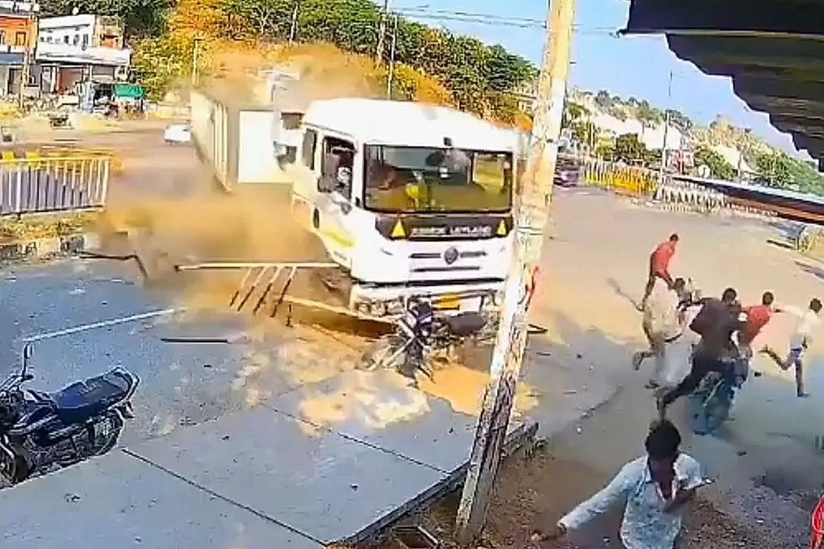 یک کامیون از کنترل خارجشده به یک کافه در ایالت راجستان هند برخورد کرد.