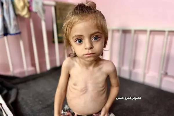 به گزارش فرارو، کمبود شدید آلبومین و پروتئین باعث شده تا پاهای این دختربچه متورم شوند و بدن کوچک و نحیفش استخوانی و نمایان شود؛ او با دردی خاموش در مجمع ناصر پزشکی در خان یونس بستری است.