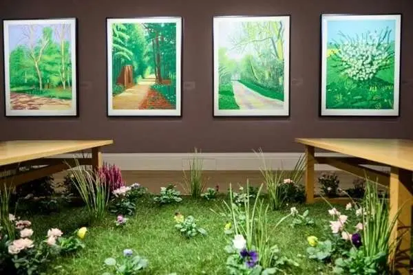 او در این نمایشگاه، مجموعه «ظهور بهار در والدگیت» را ارائه داد که شامل ۵۱ تصویر بود و جنگلها و مزارع شرق یورکشایر را در جریان تغییرات بهاری نشان میداد؛ مسیرهای بنفش در برف پیچوتاب میخوردند و درختان بیبرگ با ضربههای امپرسیونیستی به تصویر کشیده شده بودند.