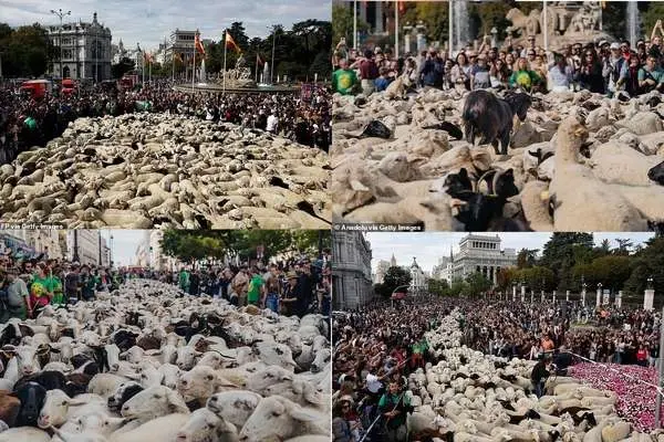 برخی خیابانهای مادرید روز یکشنبه بسیار پر تردد و شلوغ بود! نه خبری از اعتراض بود و نه فوتبال؛ بلکه گلهای بزرگ از گوسفندان و بزها در حال عبور از مرکز این شهر بودند.