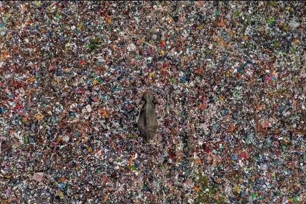 تصویری هوایی از یک فیل آسیایی در میان محل دفن زبالهای روباز در سریلانکا پربازدید شده است.