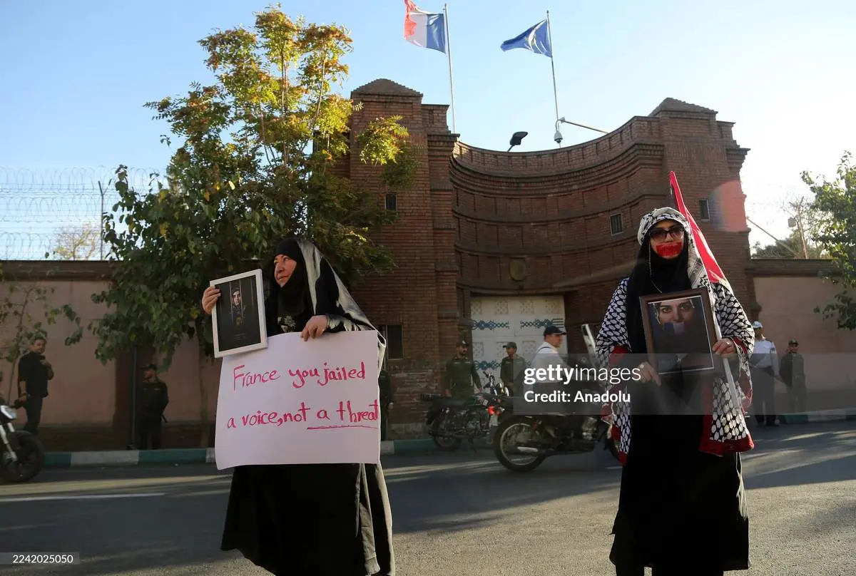 تجمع اعتراضی جمعی از دانشجویان در حمایت از مهدیه اسفندیاری، دانشجوی زندانی در فرانسه، مقابل سفارت این کشور و با شعار «دختر ایران را آزاد کنید» برگزار شد.