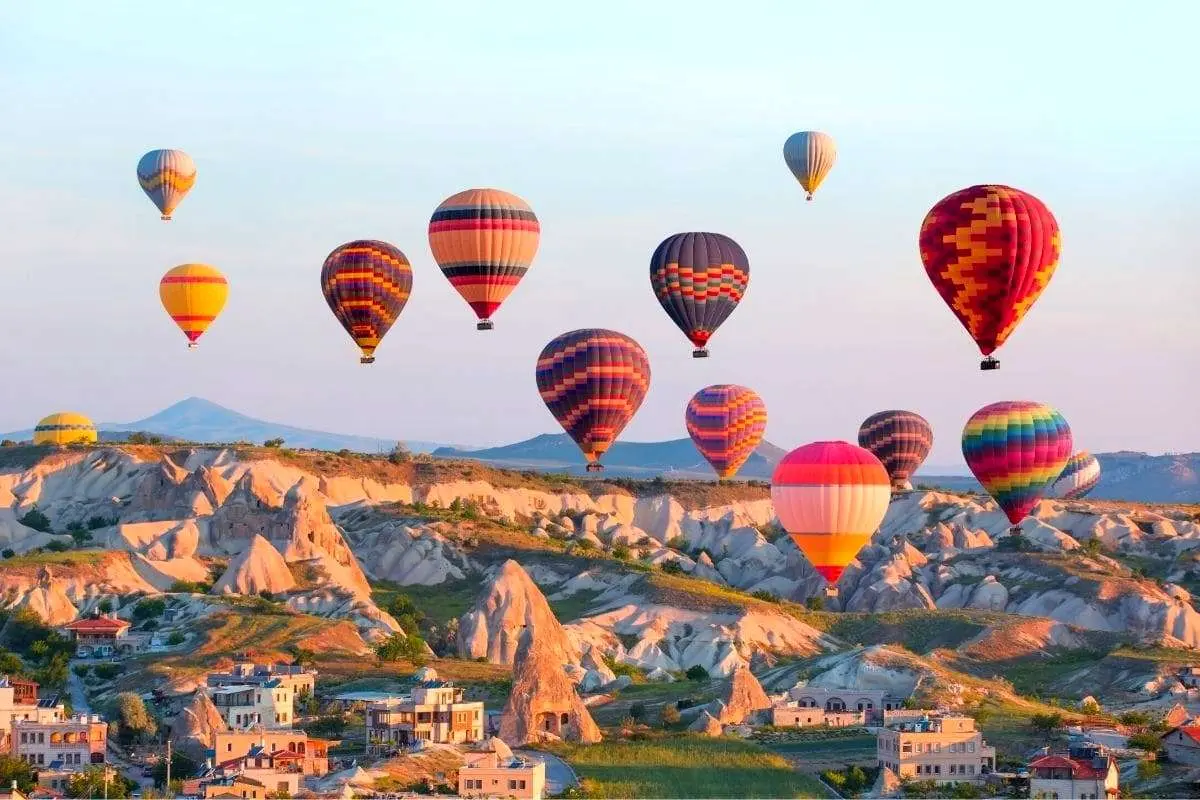 بالنهای هوای گرم، رنگ و جلوهای تازه به مناظر درههای پوشیده از دودکشهای پریگونه در کاپادوکیا میبخشند؛ منطقهای در ترکیه که یکی از مقاصد گردشگری چهار فصل این کشور به شمار میآید.