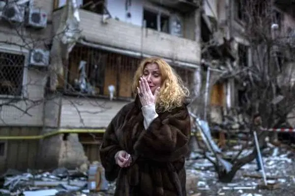 ببینید؛ زنی که به سختی از حمله هوایی روسیه به کییف جان سالم بهدر برد