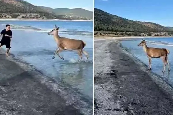 در دریاچه سالدا در استان بوردور ترکیه، یک گوزن سرخ کمیاب که در معرض خطر انقراض قرار دارد، وارد ساحل عمومی شد و با گردشگران به بازی پرداخت. رفتار دوستداشتنی و حرکات بامزه این گوزن باعث خنده و شادی بازدیدکنندگان شد.
