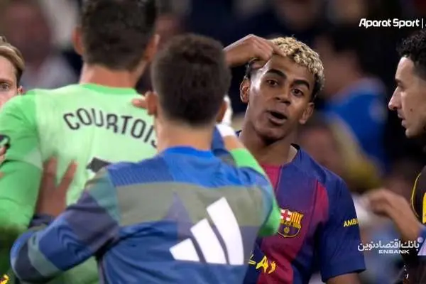 اما ماجرا هنوز تمام نشده بود. در لحظه خداحافظی، کورتوا و لامین یامال درگیر گفتوگویی داغ شدند که ناگهان به درگیری تازهای انجامید. حتی رودیگر و رافینیا، که با لباس شخصی کنار زمین بودند، وارد ماجرا شدند.