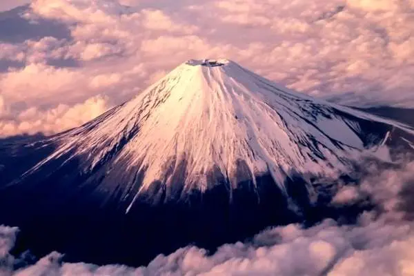 نمای کوه فوجی ژاپن از پنجره هواپیمای ترامپ
