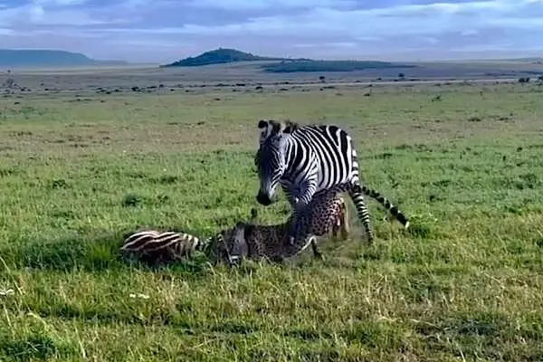 ویدئویی از حیاتوحش سرنگتی لحظاتی نفسگیر را به تصویر میکشد که یک یوزپلنگ موفق به شکار توله گورخر میشود و مادر گورخر با ایستادن بالای سر فرزندش تلاش میکند او را نجات دهد.