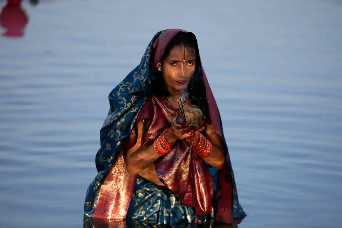 هزاران تن از پیروان آیین هندو در سراسر هند در کنار رودخانهها و دریاچهها گرد هم آمدهاند تا در چارچوب جشن مذهبی «چات»، به پرستش خدای خورشید، لُرد سوریا، بپردازند.