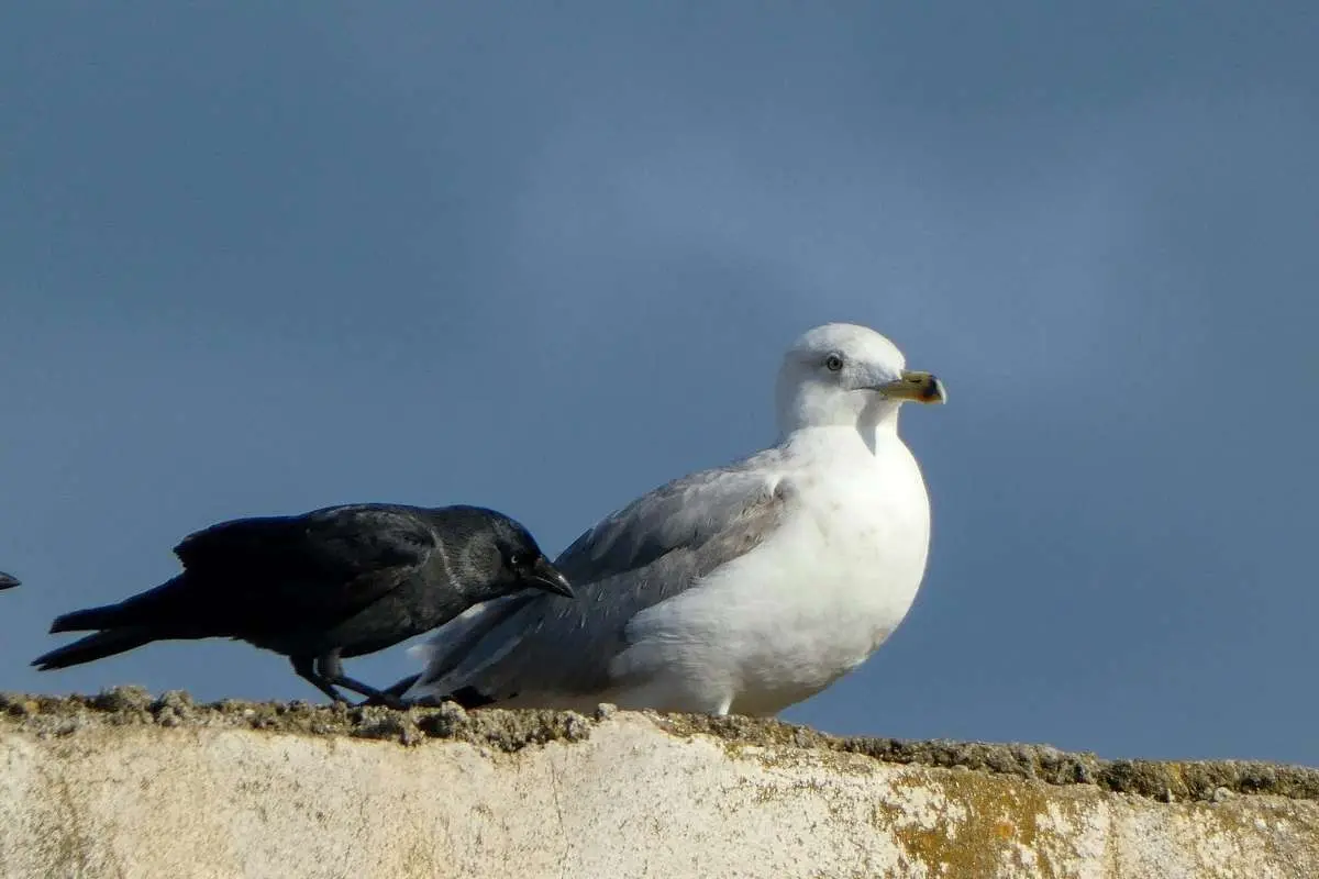تصاویری منتشر شده که به نظر می رسد میان یک مرغ دریایی و کلاغ بر سر باقیمانده غذا یا مسئلهای مربوط به قلمرو، درگیری رخ داده است. در ویدیو، کلاغ نوک بال مرغ دریایی را میگیرد و باعث اضطراب آن میشود، سپس رها میکند.