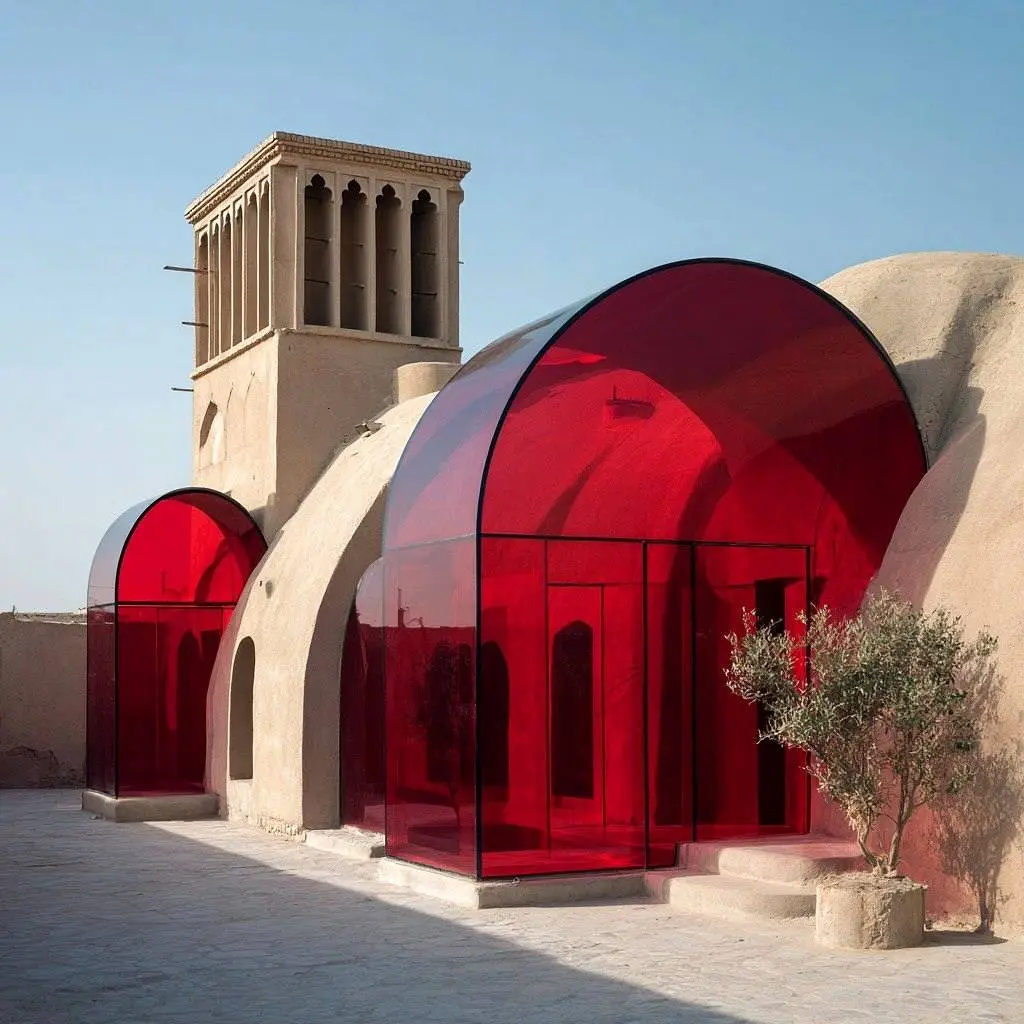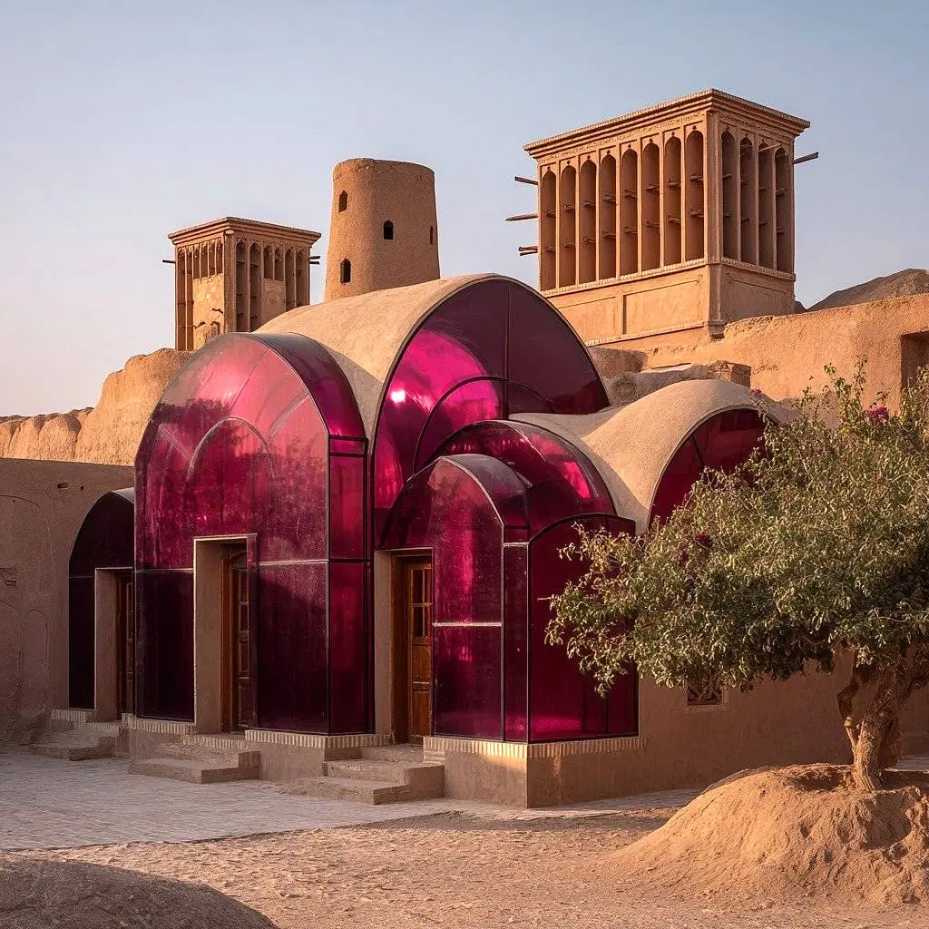 پریسا قرگز، ایدهپرداز و طراح ایرانی، با استفاده از فناوری هوش مصنوعی، یک کانسپت (مفهوم) معماری جذاب برای اقامتگاه بومگردی در دبی، امارات، ارائه کرده است. این طرح با ترکیب عناصر معماری کویری و سنتی، همچون سقفهای گنبدی و برجهای بادگیر، با متریالهای مدرن و رنگهای جسورانه، مرزهای طراحی سنتی و فناوری نوین را درنوردیده است.