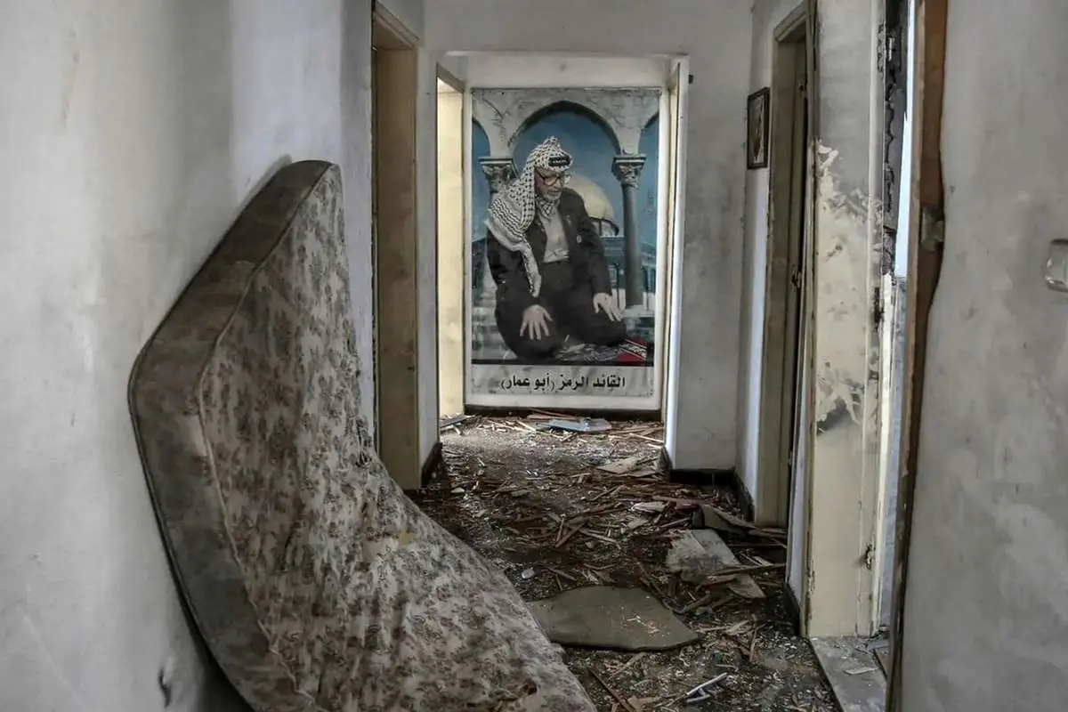 تصاویری از داخل منزل یاسر عرفات، نشان میدهد که این خانه با وجود تخریب گسترده آن توسط ارتش اسرائیل به پناهگاهی برای آوارگان فلسطینی تبدیل شده است.