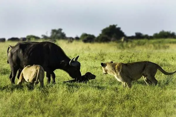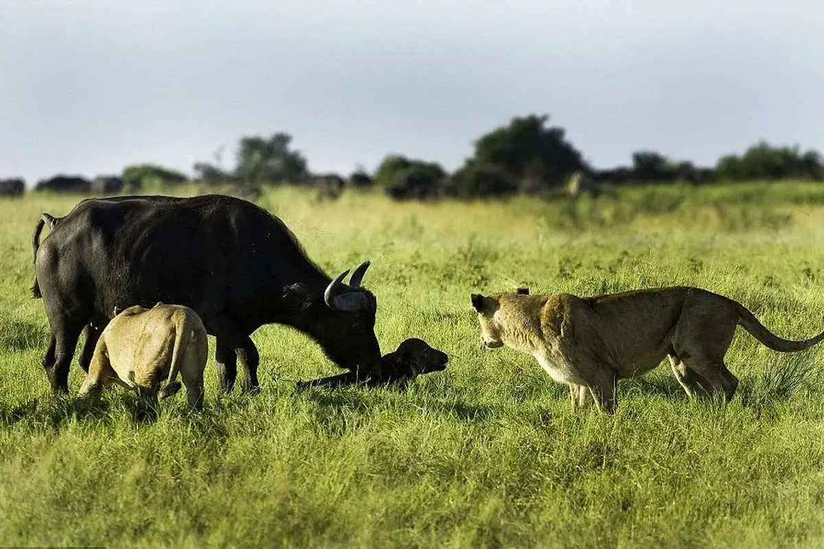 نگاه دردناک بوفالوی مادر به شکار شدن گوسالهاش توسط شیر