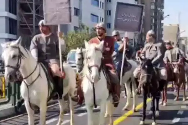 امروز ویدیویی از حضور تعداد زیادی اسب سوار با لباس های رزمی باستانی در فضای مجازی ویرال شده است.