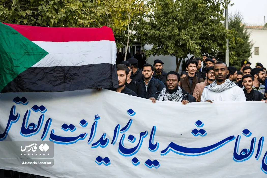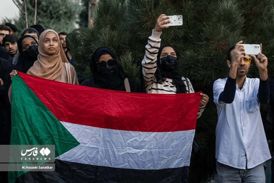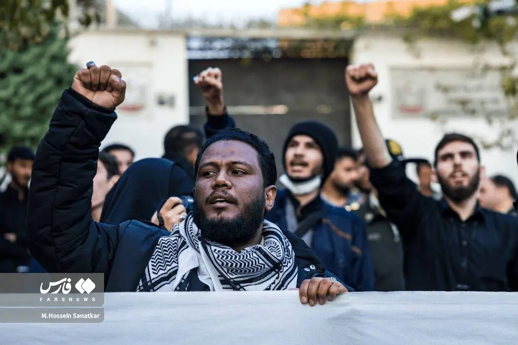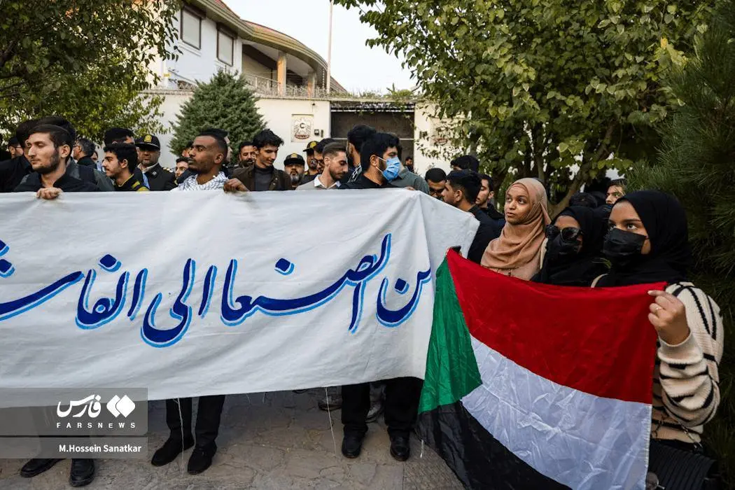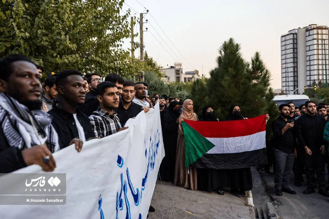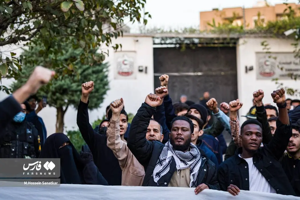 تجمع مردمی دانشجویی بوی خون غزه تا سودان مقابل سفارت امارات متحده عربی برگزار شد.