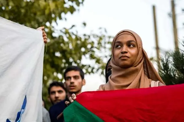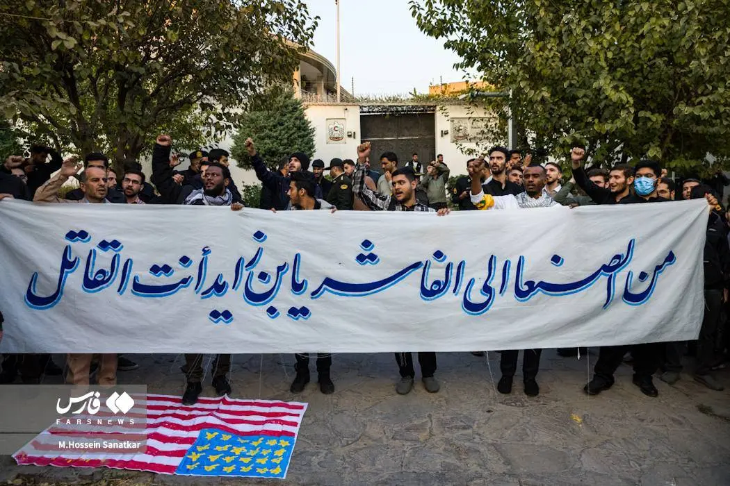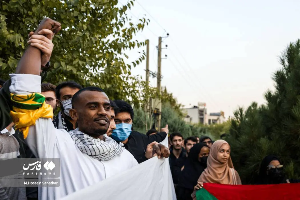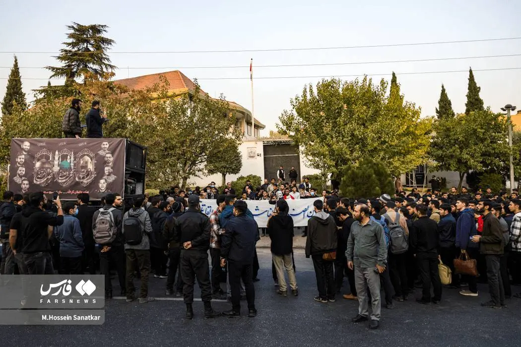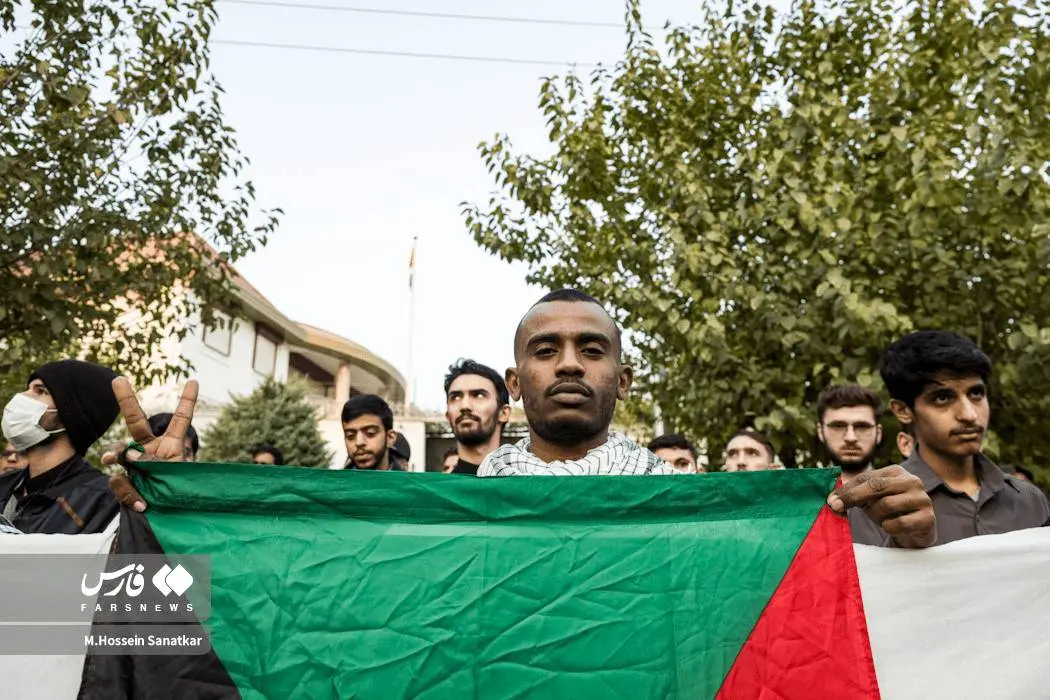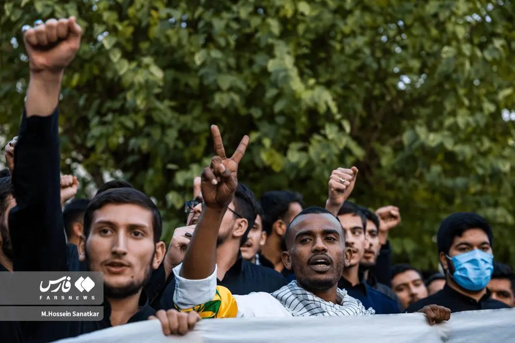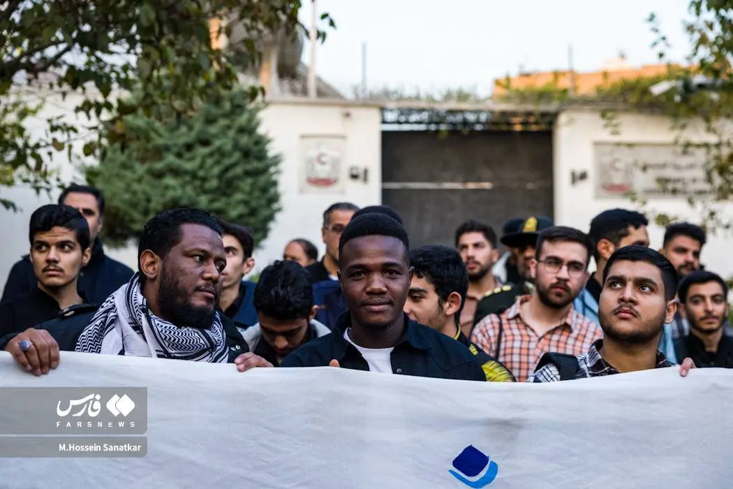 تجمع مردمی دانشجویی بوی خون غزه تا سودان مقابل سفارت امارات متحده عربی برگزار شد.