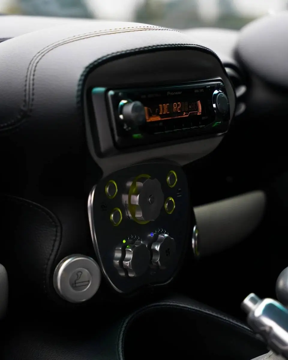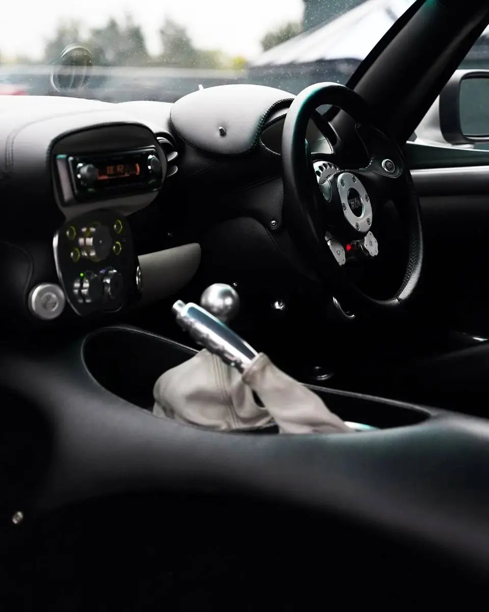 در داخل، کابین مینیمالیستی با چرم مشکی در وضعیت بسیار خوبی قرار دارد. کنسول مرکزی نقرهای، فرمان نمادین دو شاخه و داشبورد دیجیتالی، فضایی هدفمند و بدون شک متعلق به تیویآر را خلق میکنند.