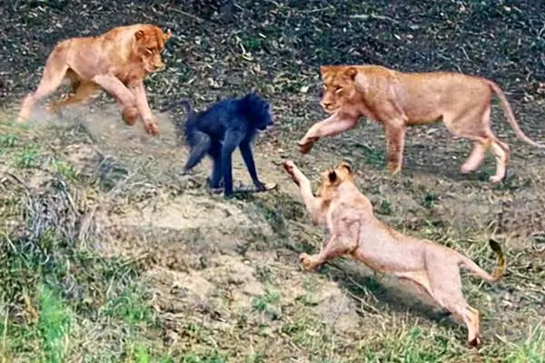 ببینید؛ اعتماد به نفس مرگبار بابون در برابر شیرها