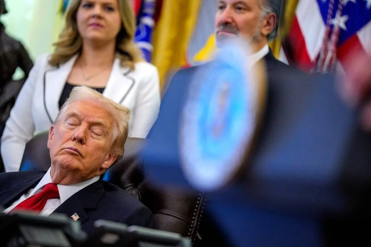 تصاویری پربازدید از ترامپ/ رئیسجمهور در اتاق کارش به خواب رفت
