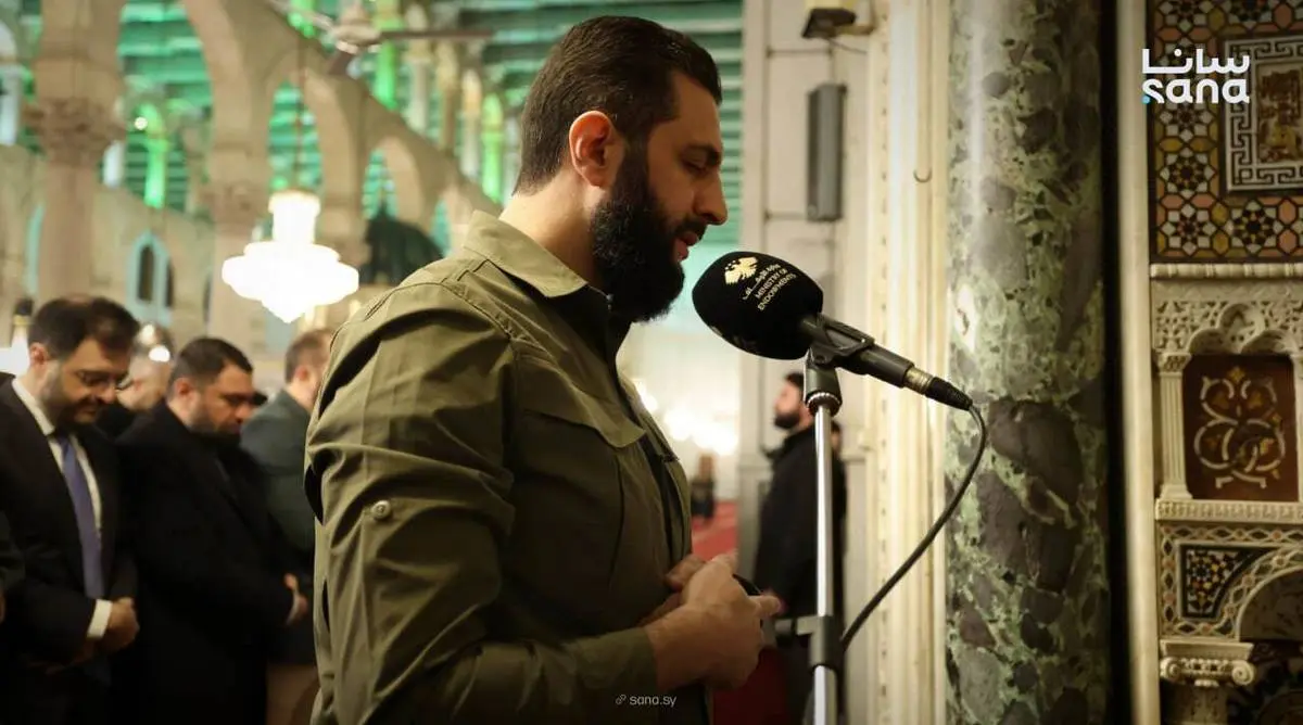 بامداد امروز و به مناسبت اولین سالگرد سقوط اسد، احمد الشرع رئیس جمهوری فعلی سوریه با لباس سبز نظامی به هنگام نماز صبح در مسجد تاریخی اموی در دمشق حاضر شد. همچنین نماز صبح امروز در مسجد اموی به امامت احمد الشرع اقامه شد. الشرع بعد از آن، برای حاضران در مسجد اموی، سخنرانی کرد.