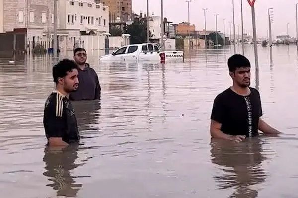 بارش شدید باران در جده؛ خیابانها به دریاچه تبدیل شد