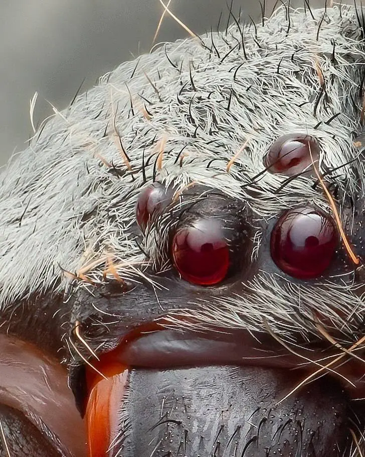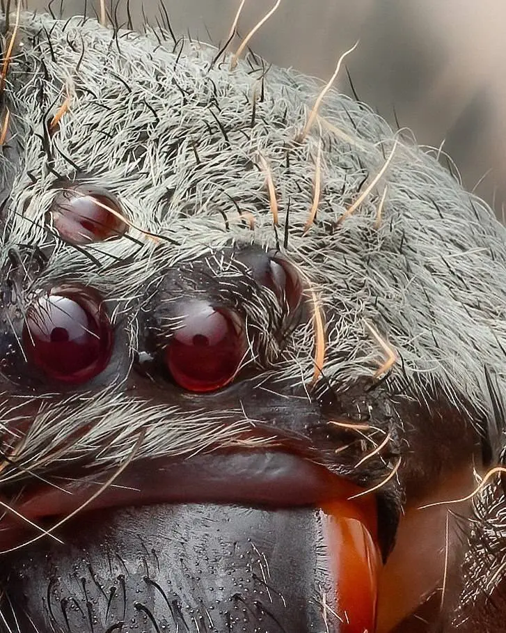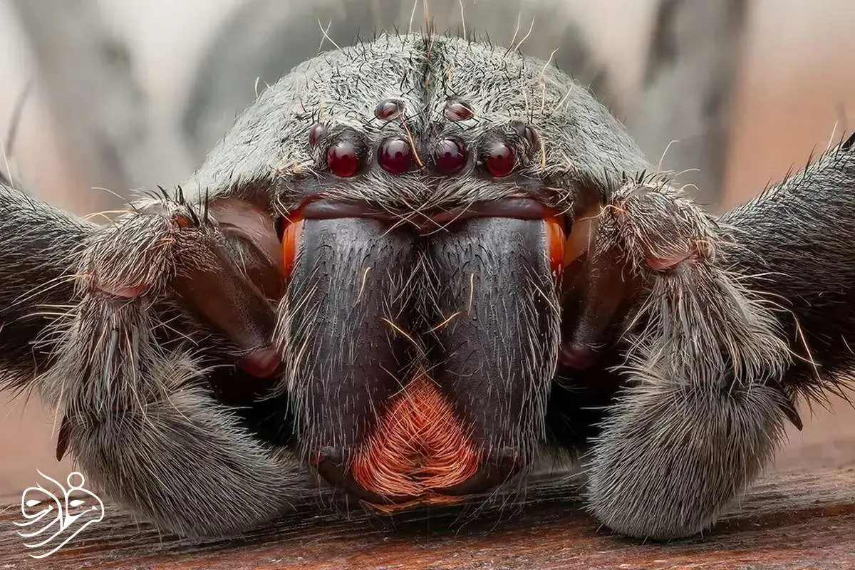 ظاهر ترسناک و خاص : عکاس این عنکبوت را «یکی از خشنترین عنکبوتهایی که تاکنون دیده است» توصیف کرده و تأکید دارد که این پرتره به دلیل چشمان مهرهای قرمز رنگ و موهای قرمز کنار نیشها، یکی از بهترین پرترههای ماکروی او تا به امروز است.