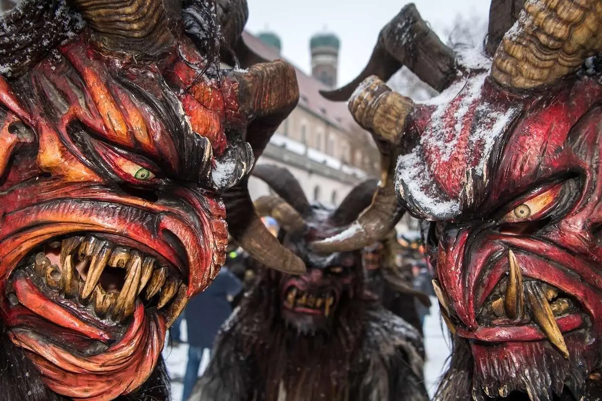 شخصیتهای «کرامپوس» ـ موجودات اهریمنیِ برگرفته از فولکلور نواحی آلپ مرکزی که گفته میشود کودکان بدرفتار را با شاخههای درخت غان تنبیه میکنند ـ در جریان رژه سالانه کریسمس در خیابانهای مونیخ به راه افتادند. این کارناوال با لباسهای ترسناک و چهرههای شیطانی، بخشی از آیینها و سنتهای پیش از کریسمس در جنوب آلمان به شمار میرود